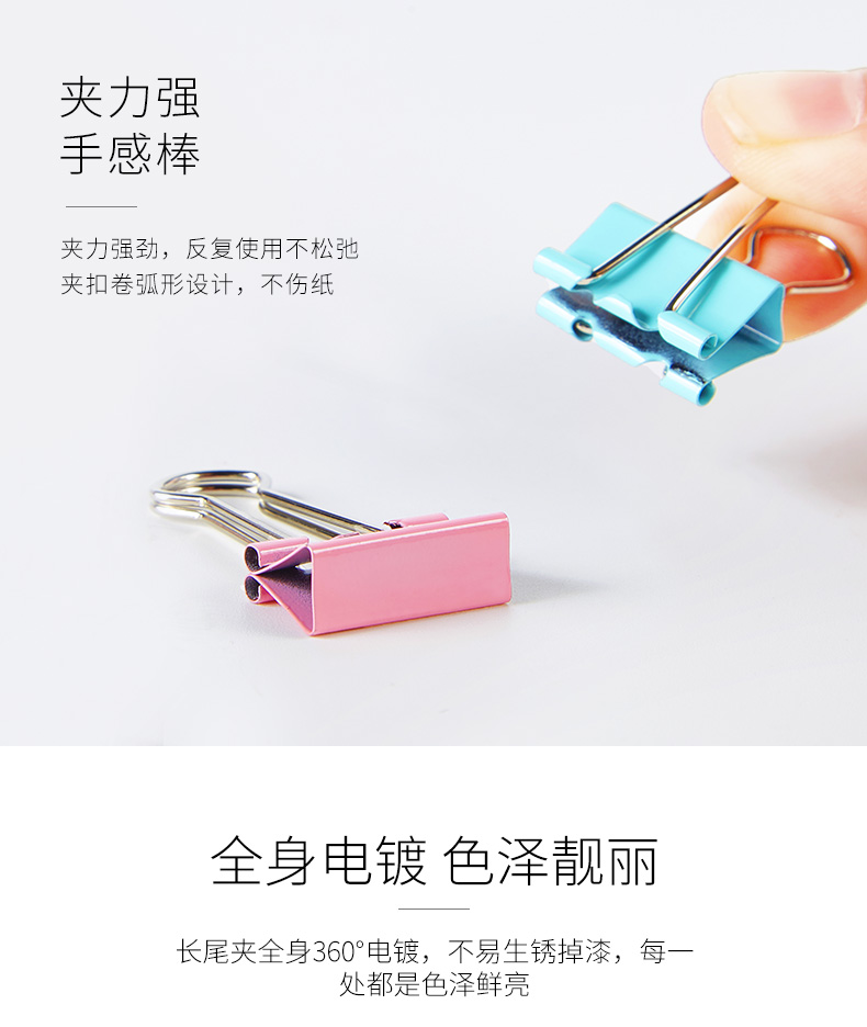 【新】BC1350彩色长尾票夹(15mm)