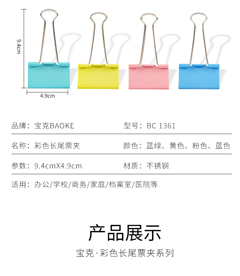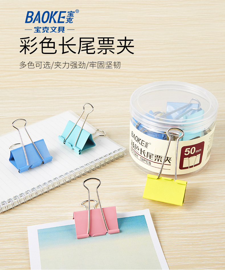 BC1361彩色长尾票夹(50mm)