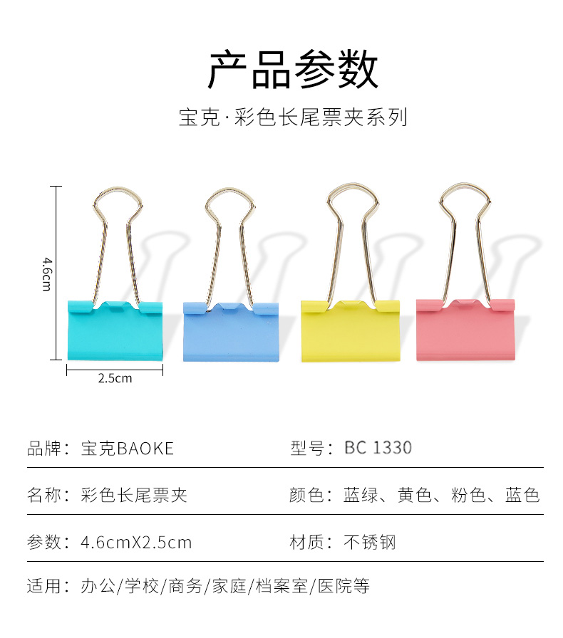 BC1365彩色长尾票夹(19mm)