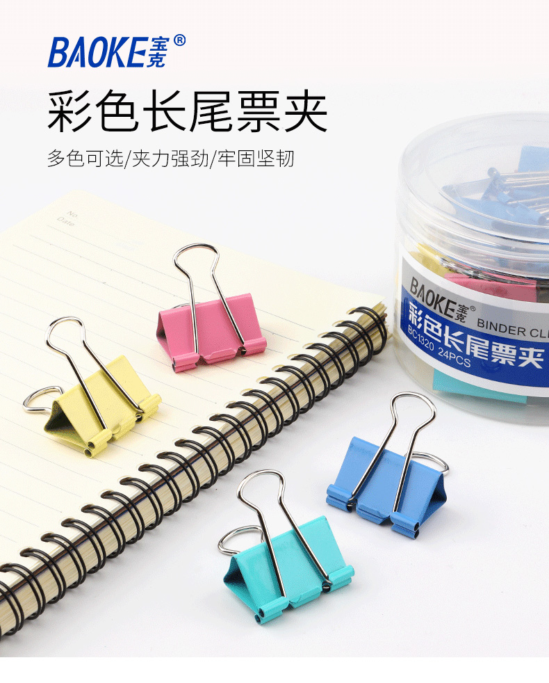 BC1365彩色长尾票夹(19mm)