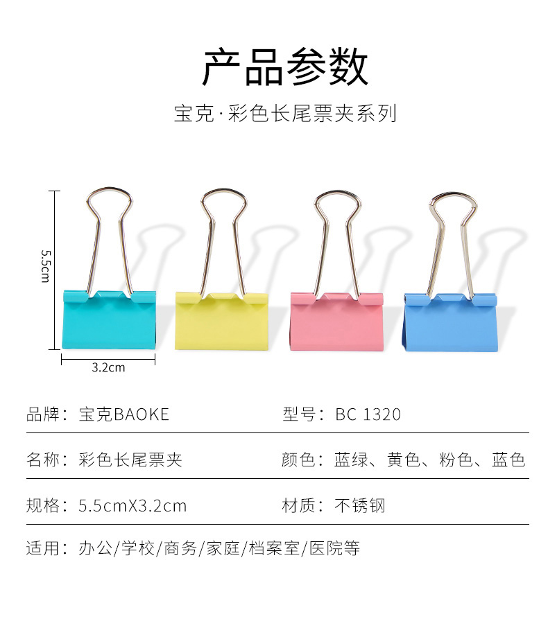 BC1363彩色长尾票夹(32mm)